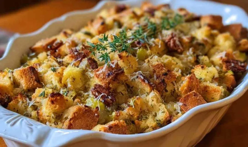 For freezing, Betty’s method works wonderfully – you can freeze this stuffing either before or after baking for up to 2 months. If freezing unbaked, assemble everything in a freezer-safe casserole dish, cover tightly with plastic wrap and aluminum foil, then thaw overnight in the refrigerator before baking as directed. For already-baked stuffing, let it cool completely, portion into freezer containers, and reheat straight from frozen.