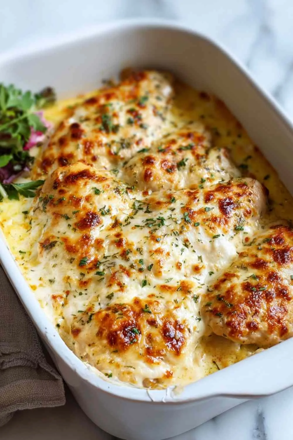 This creamy baked chicken deserves sides that complement its rich, velvety sauce: