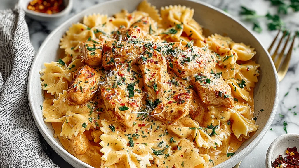 Over the years, I’ve made hundreds of pasta dishes, but this bang bang chicken pasta keeps coming back to my weekly rotation — and for good reason. It hits every note: creamy, spicy, a little sweet, and utterly satisfying. It’s the kind of dish my kids ask for by name, and one that never fails to impress guests who assume I spent hours in the kitchen.
