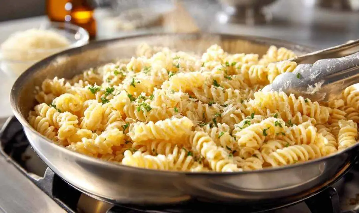 • Step 8. Add the cooked rotini to the skillet and toss gently until every piece is coated – if the sauce seems too thick, I add a splash of that reserved pasta water.