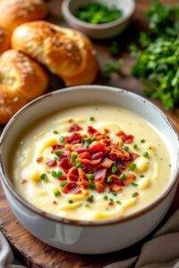 Every Sunday at my grandmother’s farmhouse, the kitchen would fill with the most incredible smell of potato soup bubbling on her old stove. She would stand there stirring slowly, adding just the right amount of cream and that perfect sprinkle of sharp cheddar cheese. Those Sunday afternoons taught me that the best comfort food does not rush – it develops its flavors slowly, just like this crockpot version does. The beauty of using your slow cooker means you get all that farmhouse flavor with modern convenience, letting the potatoes become perfectly tender while the bacon infuses every spoonful. Time to get our hands floury and create some kitchen magic.