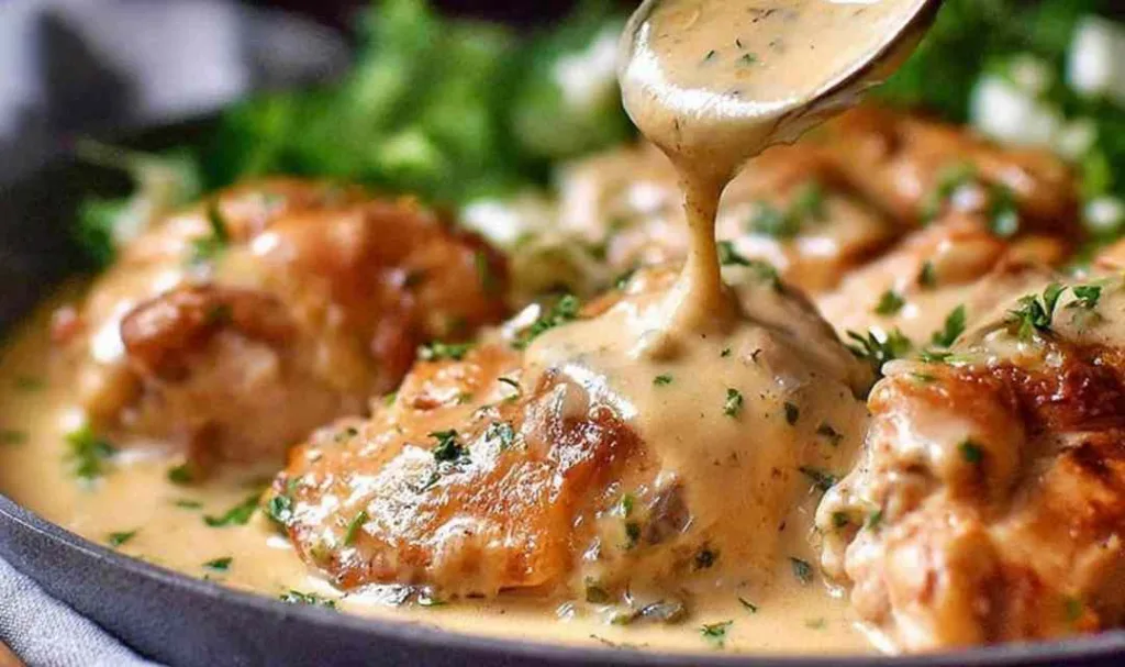 Back on the Midwest farm, cold evenings called for something warm and deeply satisfying simmering on the stove. Betty would melt a generous knob of butter in her heaviest pot, lay those chicken thighs skin side down, and just let them sit until the sizzling slowed and the skin turned a deep, crackling gold. The smell of thyme, onion, and browned butter filling that farmhouse kitchen is something I carry with me to this day. This chicken fricassee recipe captures exactly that feeling: humble, honest ingredients pulled together into something silky, comforting, and genuinely memorable. Whether you spoon it over mashed potatoes on a Sunday or serve it over rice on a Tuesday night, this dish never lets you down. Time to get cooking.