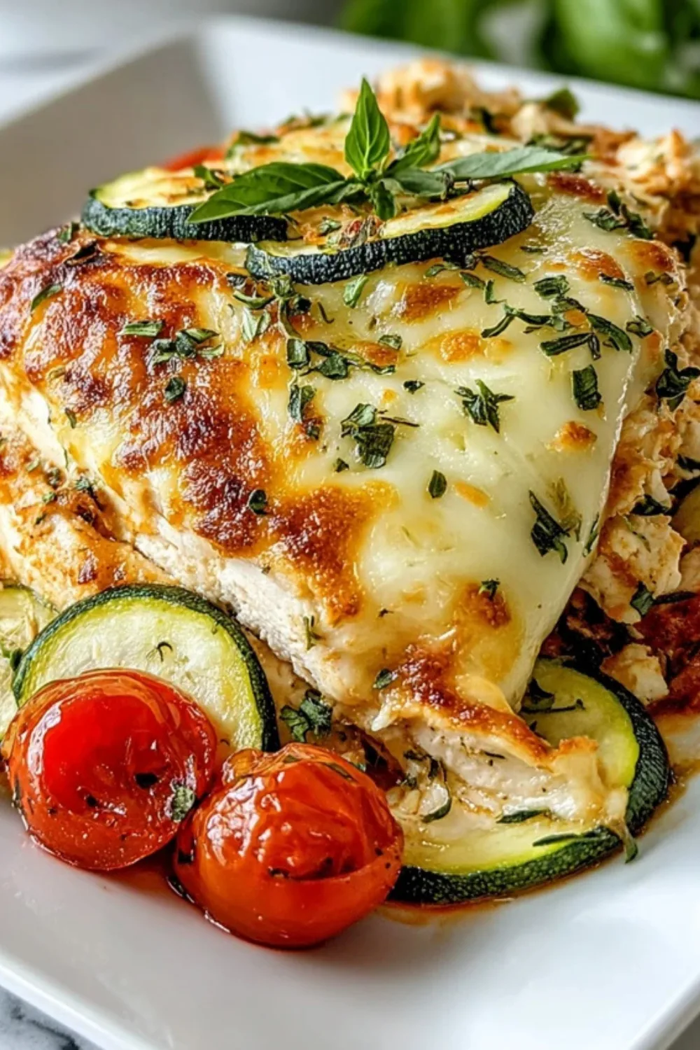 On Sunday afternoons, her kitchen always smelled like garlic and bubbling cheese. She had a gift for turning leftover roast chicken and garden zucchini into something that felt genuinely special, without making it complicated. This recipe carries that same spirit. You get tender zucchini ribbons, juicy shredded chicken, and three melted cheeses baked together into a golden, satisfying bake that also happens to be gluten-free and high in protein. Everything comes together in a single dish, and the oven does most of the work. Your kitchen is going to smell wonderful.