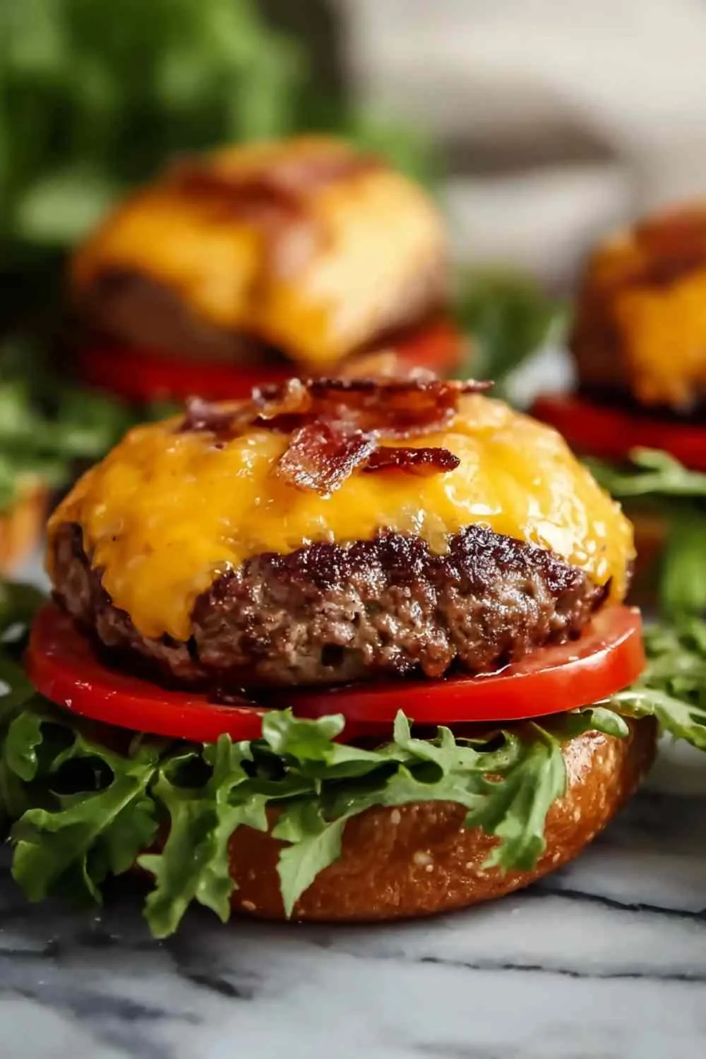 These burgers freeze reasonably well if you need to prep ahead. Betty’s method is to wrap each cooked burger individually in plastic wrap, then place them all in a freezer-safe bag for up to 2 months. The cheese and bacon maintain their flavor nicely, though the texture is best when the burgers are freshly made.