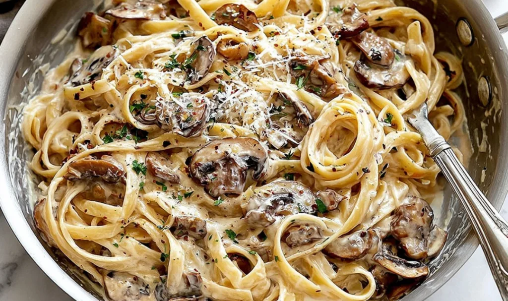 This recipe works beautifully whether you’re cooking for two or scaling up for a crowd. The mushrooms are surprisingly filling, and that Parmesan cream sauce clings to every strand of pasta in the most satisfying way.