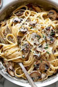 This recipe works beautifully whether you’re cooking for two or scaling up for a crowd. The mushrooms are surprisingly filling, and that Parmesan cream sauce clings to every strand of pasta in the most satisfying way.