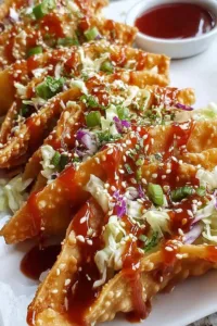 Absolutely! I recommend brushing the wonton wrappers lightly with oil and baking them at 375°F for about 5 minutes until golden and crispy. They won’t be quite as crunchy as fried, but this method works well if you’re avoiding frying.
