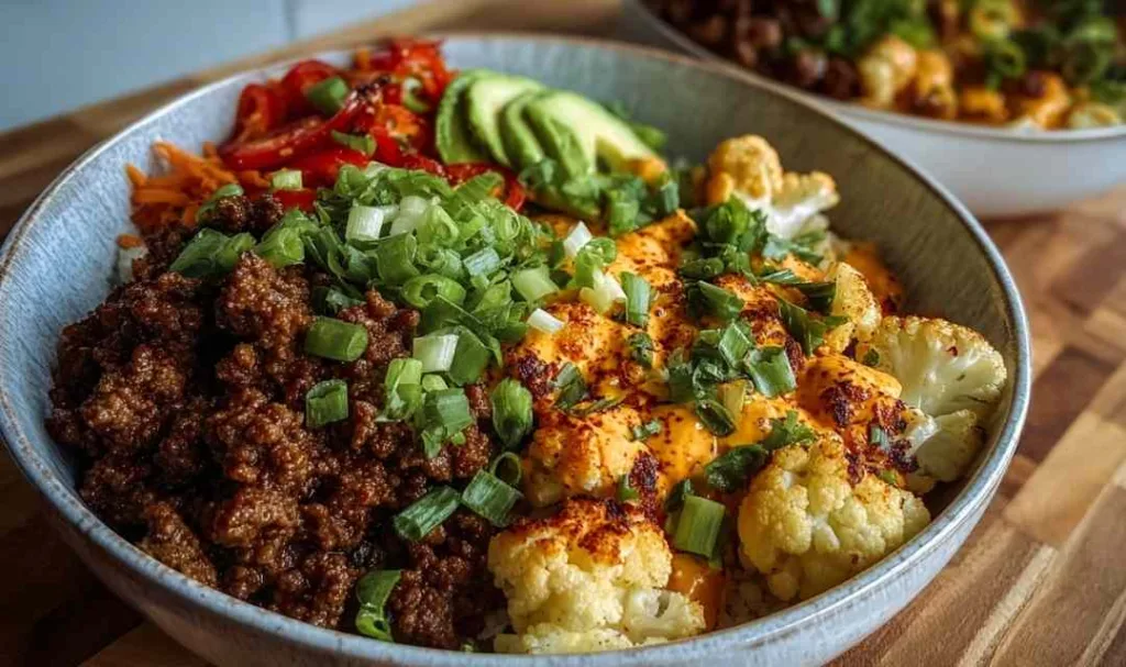 I remember the first time I roasted cauliflower until it got those golden, crispy edges. It was like discovering a whole new vegetable. Growing up in the Midwest, we ate plenty of ground beef casseroles and hearty dinners, but this bowl brings that same comfort with a fresh twist. The chile-spiced beef reminds me of Sunday suppers at Grandma’s farm, where every dish had personality and spice. These bowls come together quickly on busy weeknights, and the toppings bar is where everyone gets to make it their own, just like we used to do with taco night. Your kitchen’s about to smell incredible.