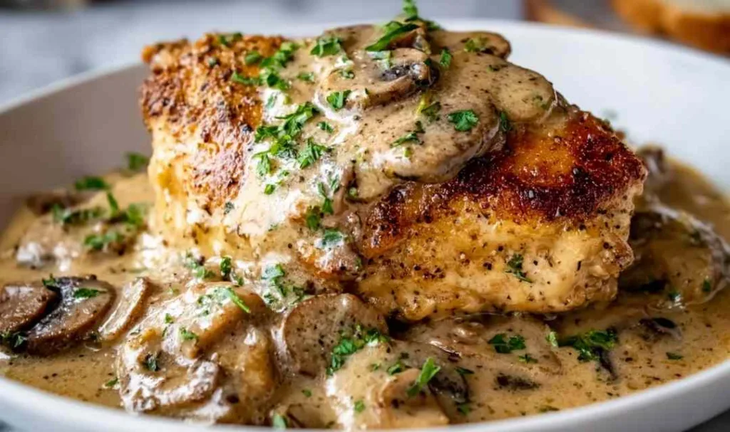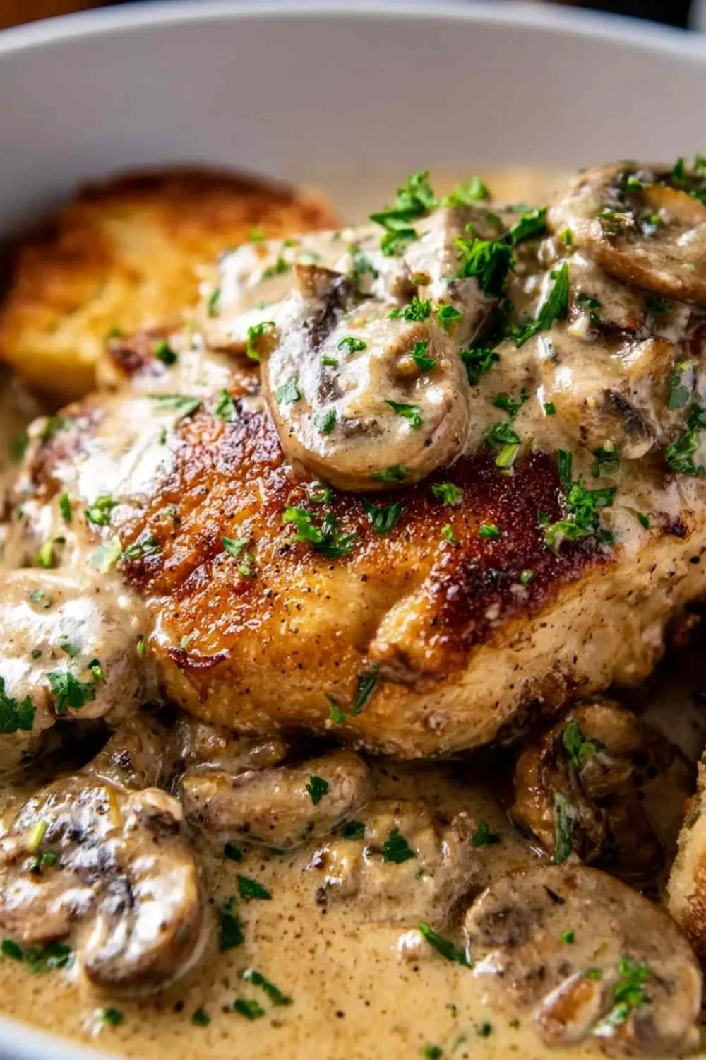 - Serve the chicken and gravy over rice or mashed potatoes, garnished with fresh chopped parsley.