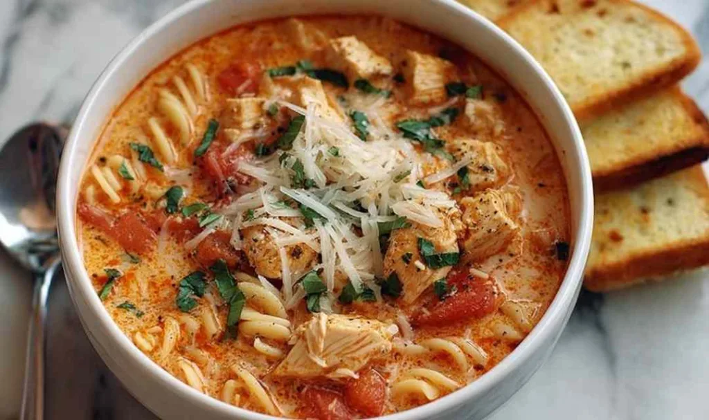 - Perfect texture balance – creamy tomato broth paired with tender pasta and juicy chicken creates satisfying comfort in every bite