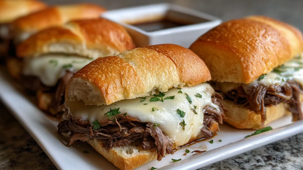 It was one of those afternoons when the whole family piled in after church, boots tracking snow across the entryway, and the slow cooker had been quietly doing its work since morning. The smell hit you the moment you walked through the door – that deep, savory aroma of beef slowly surrendering to broth and onion, filling every corner of the house. My grandma used to say you could tell a good cook by whether her kitchen smelled like something worth staying for. That day, nobody left early. We piled crusty rolls high with shredded beef, laid a slice of provolone on top, and slid them under the broiler until the cheese bubbled and the edges went golden. Then came the best part – dipping that sandwich into a little bowl of warm au jus and taking that first bite. Every single person at the table went quiet for a moment. That quiet is the real compliment. Your kitchen is about to smell incredible.