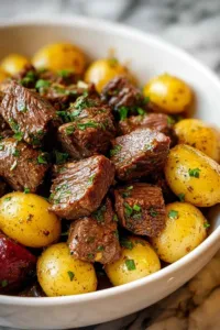 - Creates a rich garlic butter sauce that coats every piece of beef and potato