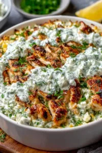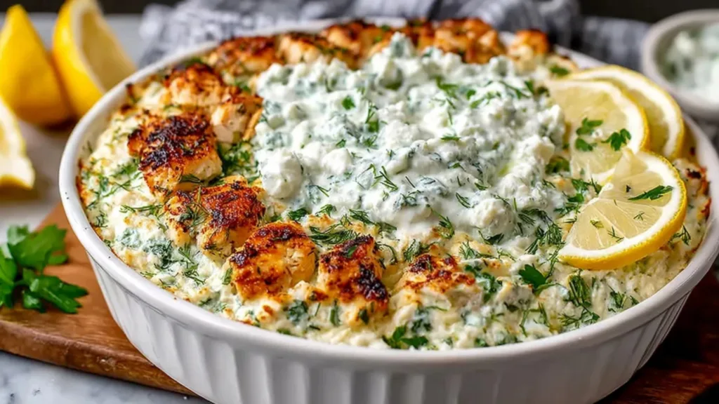 This dump-and-bake chicken tzatziki casserole is perfect for busy weeknights when you don’t want to fuss in the kitchen. Just toss raw chicken into a baking dish with tzatziki sauce and your favorite veggies, then let the oven do all the work. It’s creamy but not heavy, packed with garlic, cucumber, and lemon in every bite, making it a family-friendly comfort meal that requires minimal effort and cleanup.