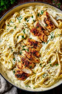 - Tender, golden chicken with silky fettuccine creates the perfect texture combination