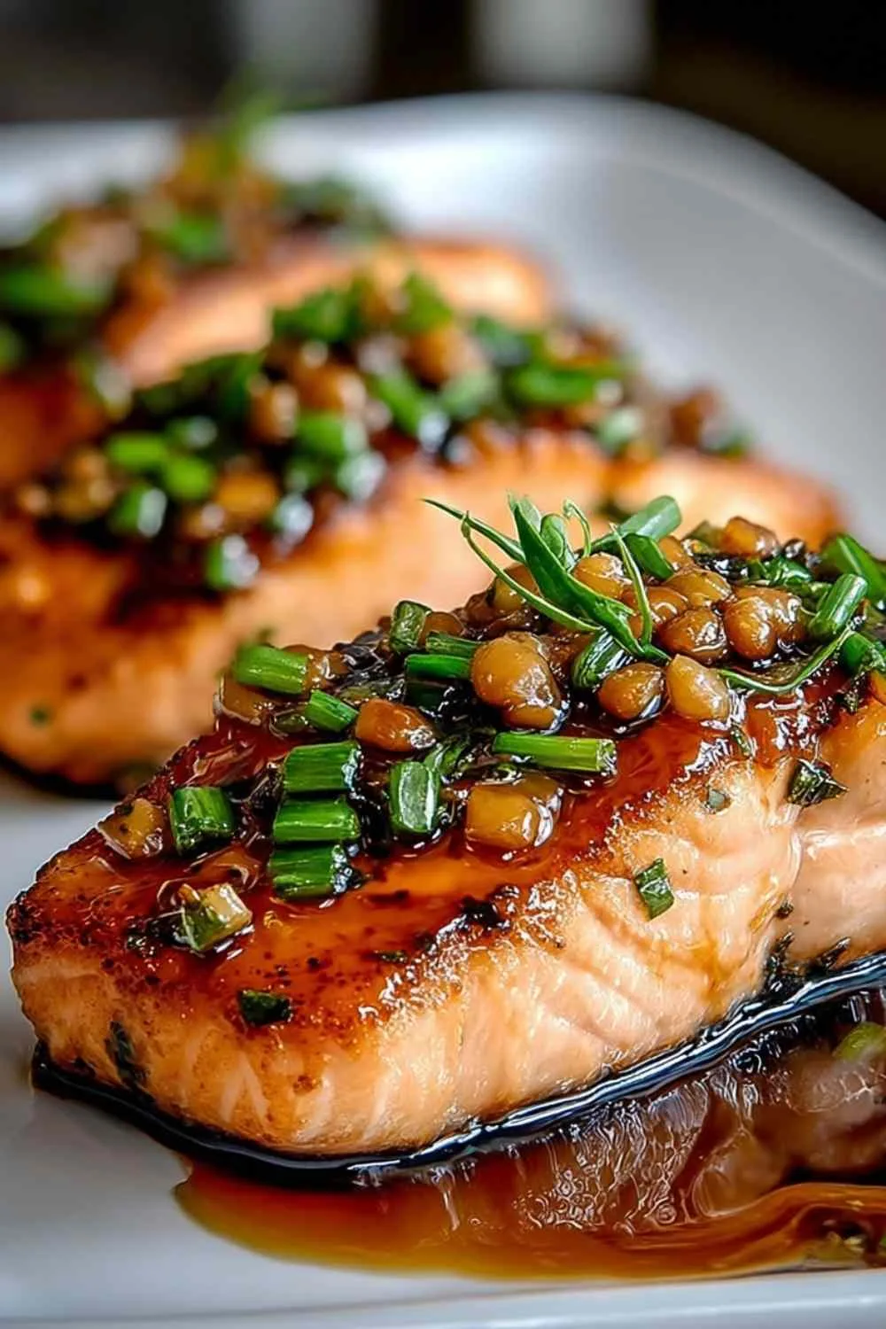 8. Transfer salmon to serving plates and drizzle remaining glaze over each piece. Garnish with chopped green onions and serve immediately.