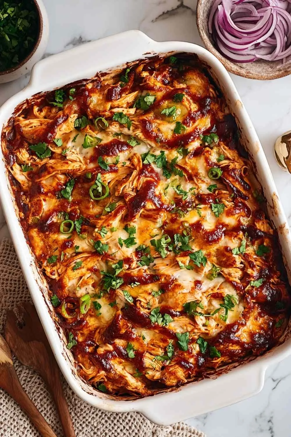 Cheddar Cheese: Sharp cheddar brings a bold, tangy flavor that stands up to the BBQ sauce, and I always buy a block to shred myself rather than using pre-shredded. Freshly shredded cheese melts into that perfect bubbly, golden top layer we’re after.