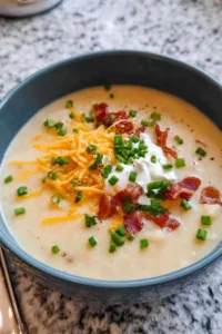 Bacon adds a smoky depth that transforms simple potato soup into something extraordinary, and those crispy bits on top make every spoonful special.