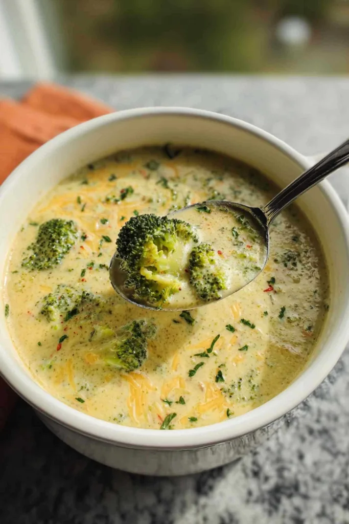Can I use frozen broccoli instead of fresh? I recommend fresh broccoli for the best texture and flavor, but frozen broccoli works in a pinch. Just add it directly to the soup without thawing first, and you may need to increase the simmering time by 2-3 minutes.