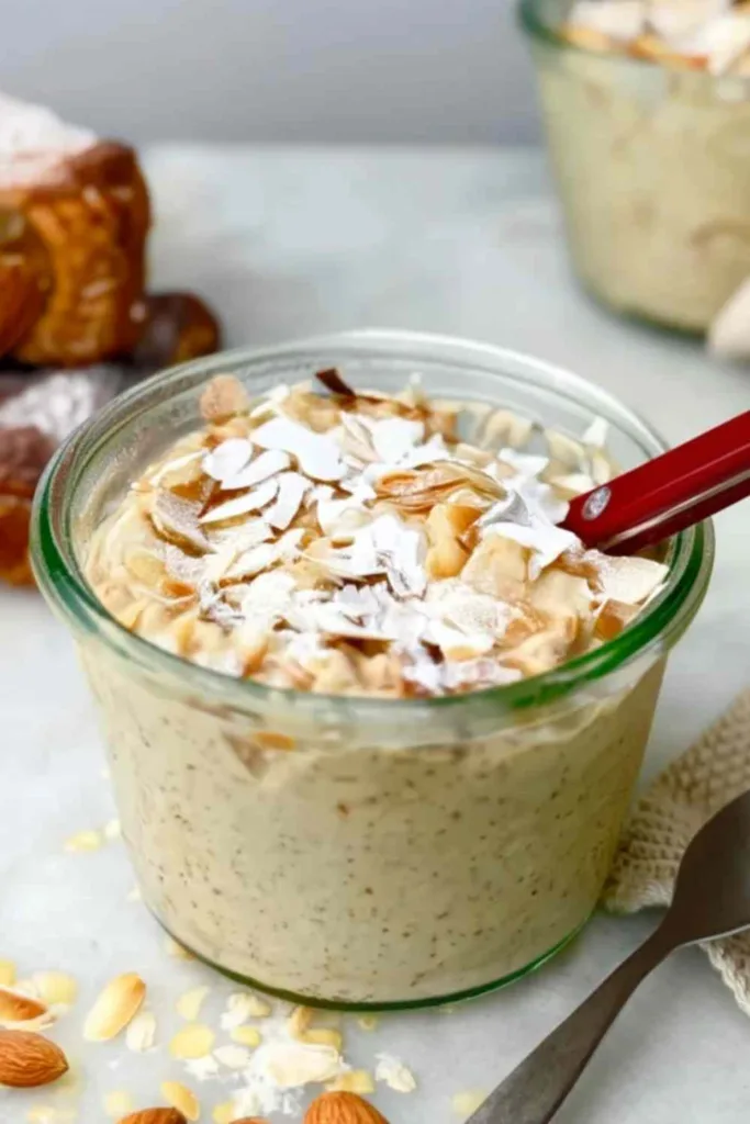 Protein powder is the star ingredient that transforms ordinary overnight oats into a high-protein breakfast. I prefer vanilla whey protein because it blends smoothly and doesn’t overpower the other flavors, though unflavored works perfectly if you want complete control over sweetness.