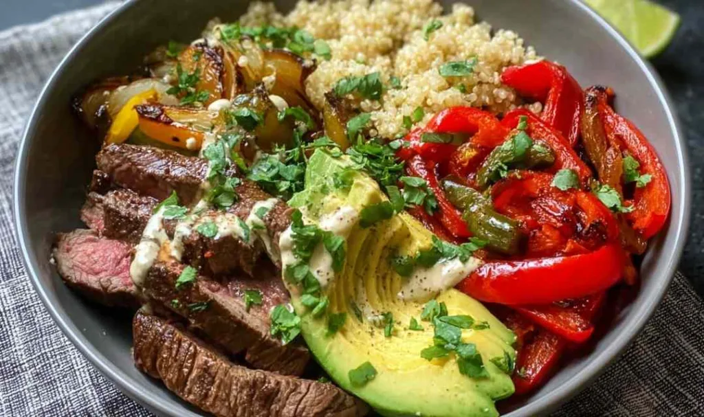Skirt steak is my preferred cut for fajita bowls because it absorbs marinades beautifully and cooks quickly over high heat, delivering that slightly charred exterior and juicy interior we’re after.