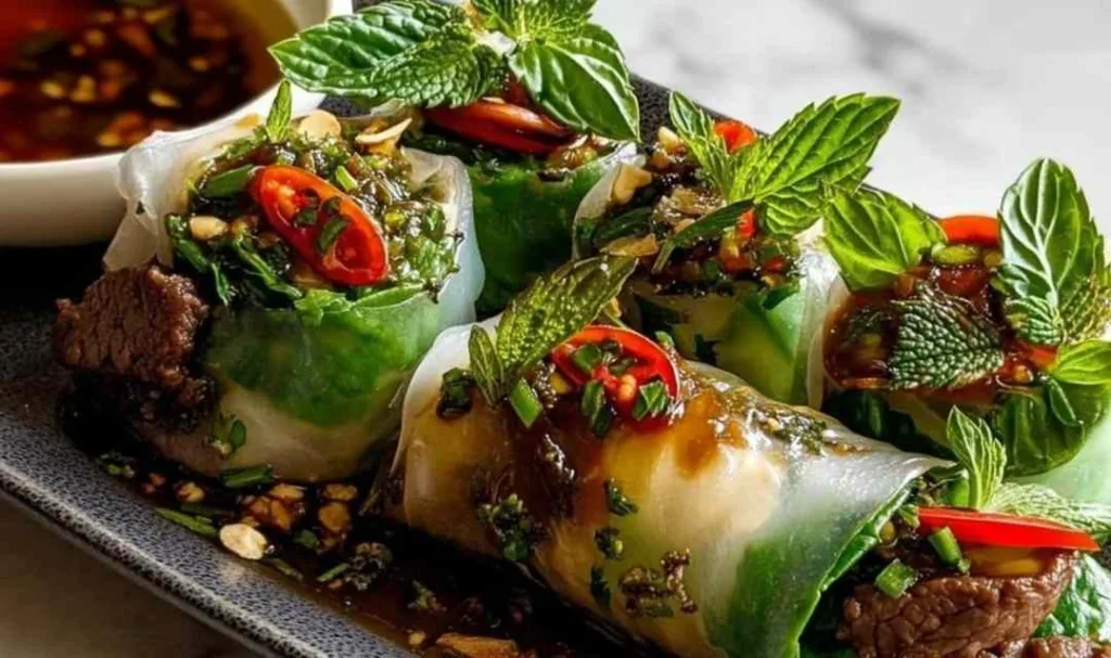 • Fresh Mango or Mango Sticky Rice: For a sweet finish, sliced fresh mango or traditional mango sticky rice brings cooling sweetness that beautifully complements the savory, slightly spicy beef rolls.