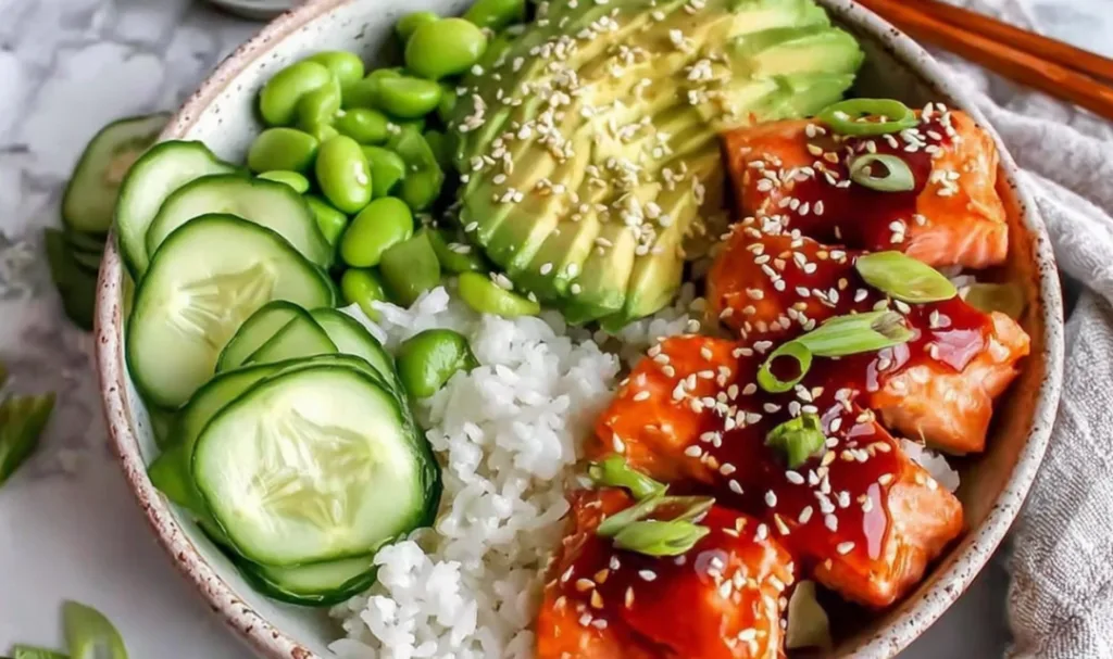 Many home cooks find success with meal prepping – cook the salmon and rice on Sunday, prep the vegetables, and store everything separately to assemble fresh bowls throughout the week.