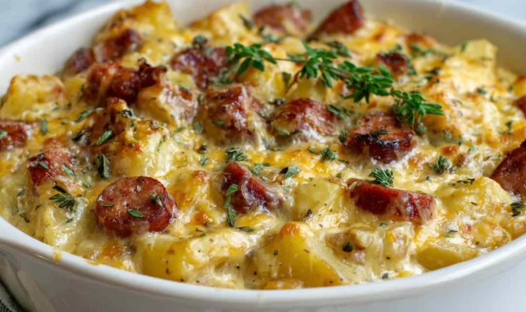 Kielbasa Sausage Cheesy Potato Casserole