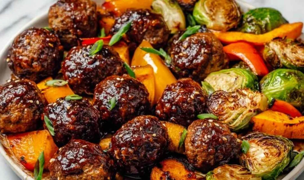 Korean BBQ Meatballs with Roasted Vegetables