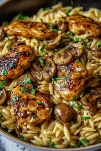 I’ve been making Italian-inspired chicken dishes for over thirty years, and this Marsala Chicken Orzo stands out because it delivers authentic restaurant flavor in a single skillet. The Marsala wine reduces into a rich, slightly sweet sauce that pairs perfectly with the creamy orzo.