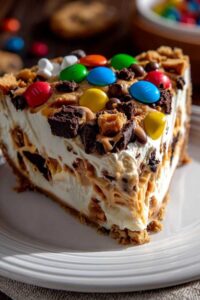 - Crowd-pleasing appeal – Those mini M&Ms aren’t just pretty; they make this pie a hit with kids and adults alike at every gathering