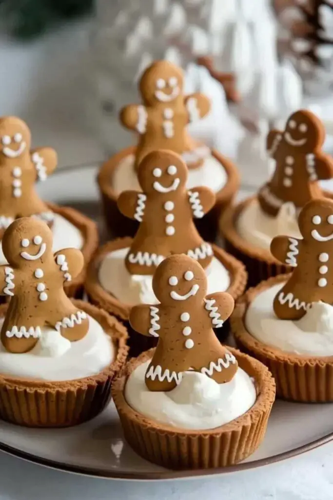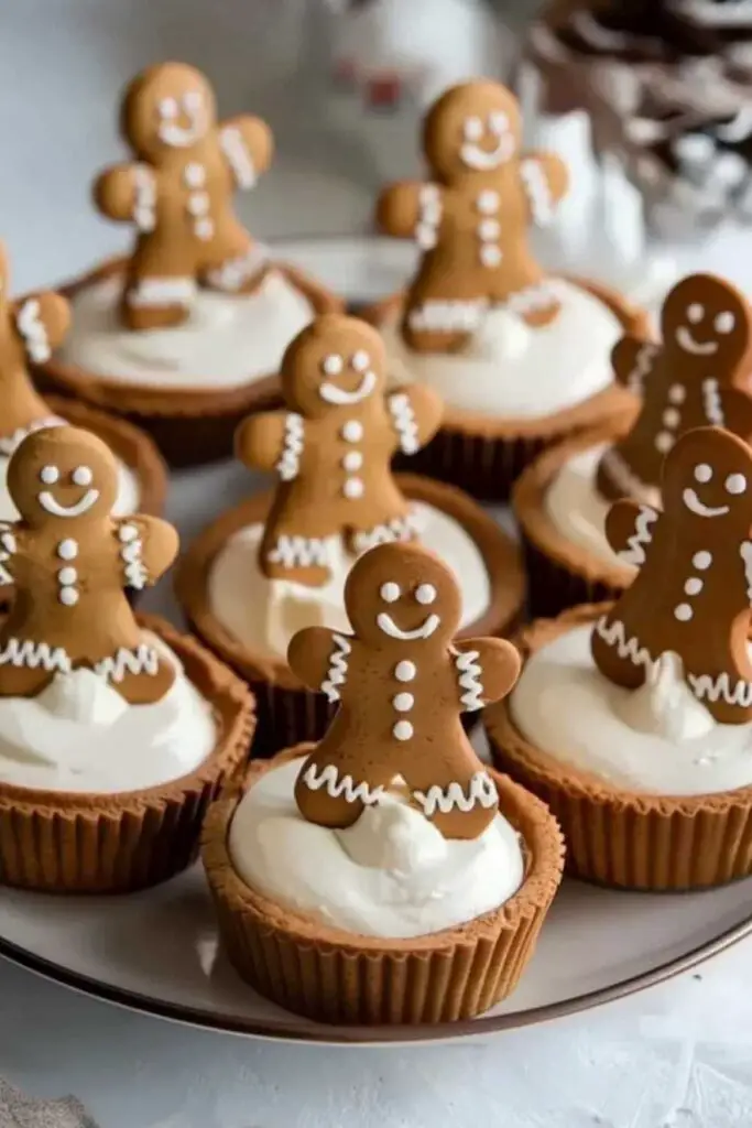 - Before serving, top each cup with a dollop of whipped cream, sprinkle with crushed gingerbread cookies, place a mini gingerbread man cookie on top, and lightly dust with ground cinnamon if desired.