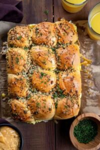 Make Ahead: Assemble sliders without cowboy butter, wrap tightly, and refrigerate for 1-2 days or freeze for up to 2 months. Brush with cowboy butter just before baking. For easier slicing, place Hawaiian rolls in freezer for 10-15 minutes before cutting. Mix cooked sausage, bacon, and cheese together before layering for better distribution. Total prep time includes cooking eggs, sausage, and bacon.