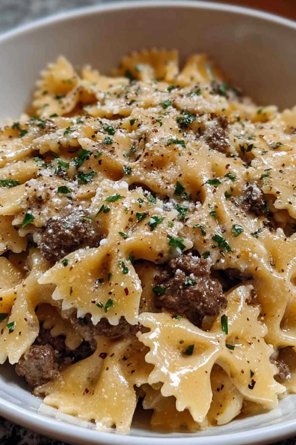 - Add cooked pasta to skillet and toss to coat evenly with creamy sauce. Serve hot, garnished with fresh parsley.
