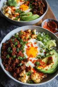 - To serve, divide roasted cauliflower among serving bowls, then generously top with crispy chile ground beef.