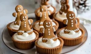 - Before serving, top each cup with a dollop of whipped cream, sprinkle with crushed gingerbread cookies, place a mini gingerbread man cookie on top, and lightly dust with ground cinnamon if desired.