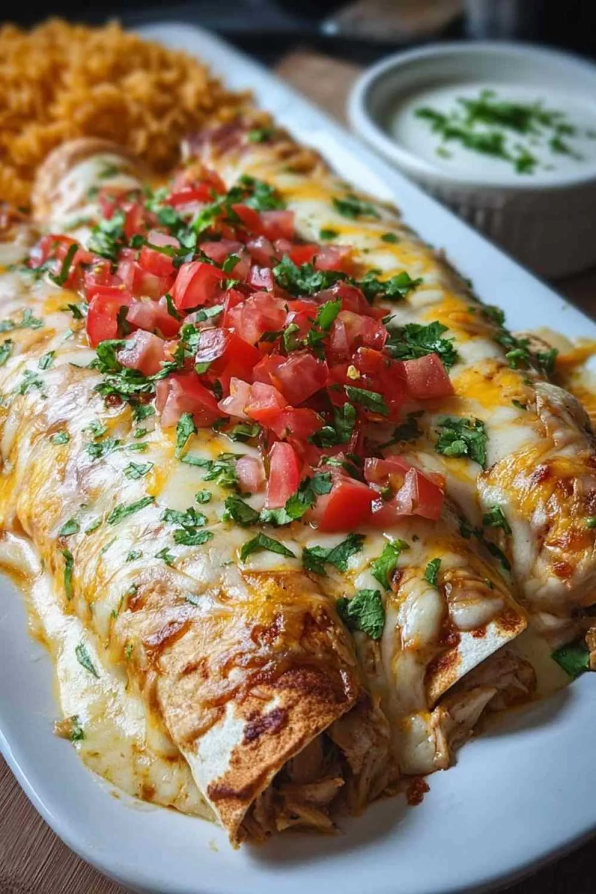 - Pour the warm queso sauce evenly over all enchiladas, ensuring complete coverage.