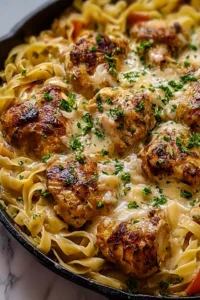 There’s something magical about watching a skillet transform basic pantry staples into a complete meal. I remember the first time I made this dish on a particularly hectic Tuesday evening – three kids with different after-school activities, a kitchen that needed cleaning, and about thirty minutes before everyone needed to be fed. I pulled out my trusty large skillet, some chicken breasts, and a bag of egg noodles, and what emerged was pure comfort. The butter melted into the garlic-infused broth, coating each noodle with rich flavor, while the seasoned chicken rested on top like a crown. My youngest declared it “better than restaurant food,” and honestly, I had to agree. The best part? Just one pan to wash. Time to get our hands cooking!