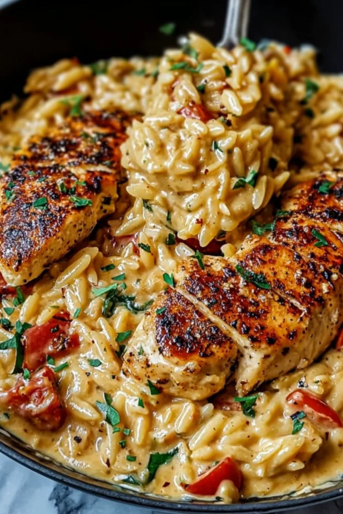 One-Pot Cajun Chicken Alfredo Orzo