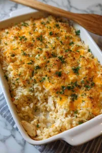 Cream of chicken soup brings rich, savory depth and helps create that signature creamy texture that makes this casserole so comforting.