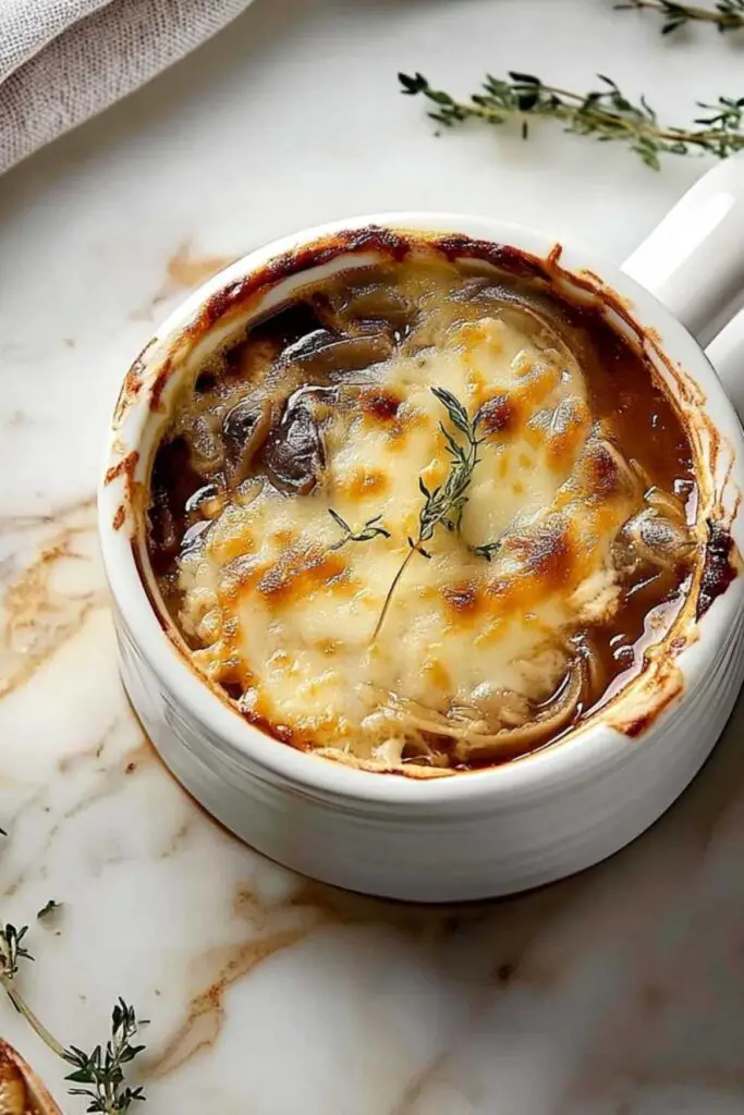 Can I make this soup vegetarian? Absolutely! I recommend using a high-quality vegetable broth instead of beef broth. The caramelized onions provide so much flavor that you won’t miss the beef base at all.