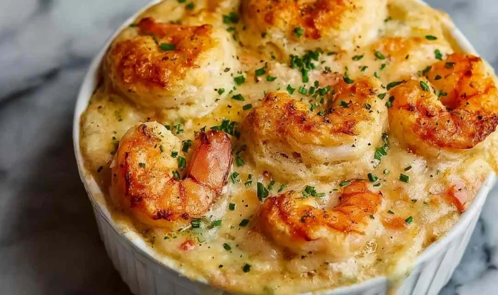 Garlic: Fresh garlic infuses the entire dish with aromatic warmth, complementing both the seafood filling and the savory biscuit topping.