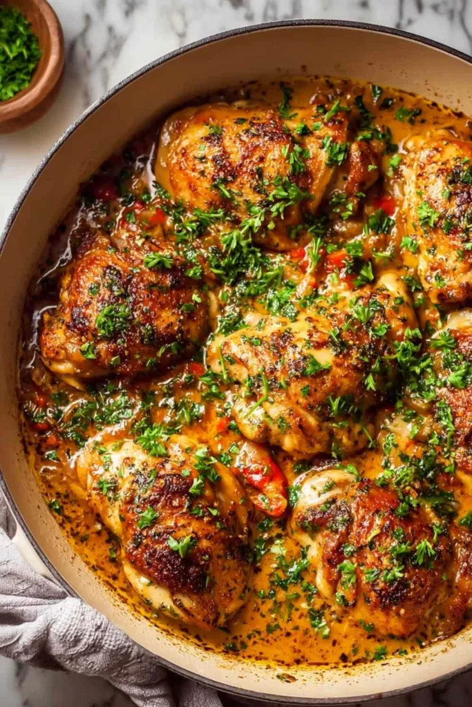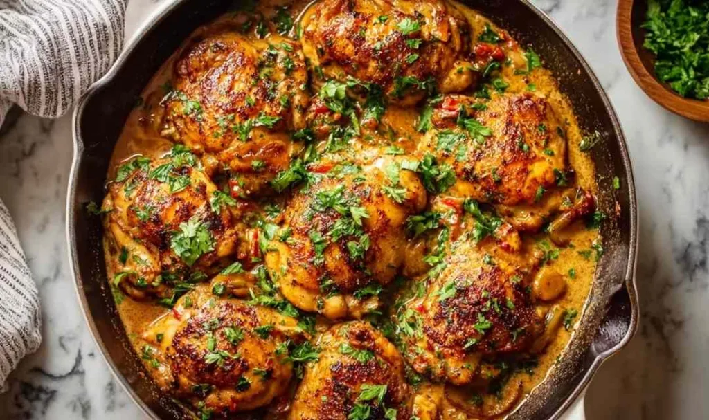Golden bone-in chicken thighs seared to perfection and nestled in a creamy Cajun garlic sauce. This one-pan Southern-inspired comfort dinner delivers restaurant-quality flavor in just 45 minutes.