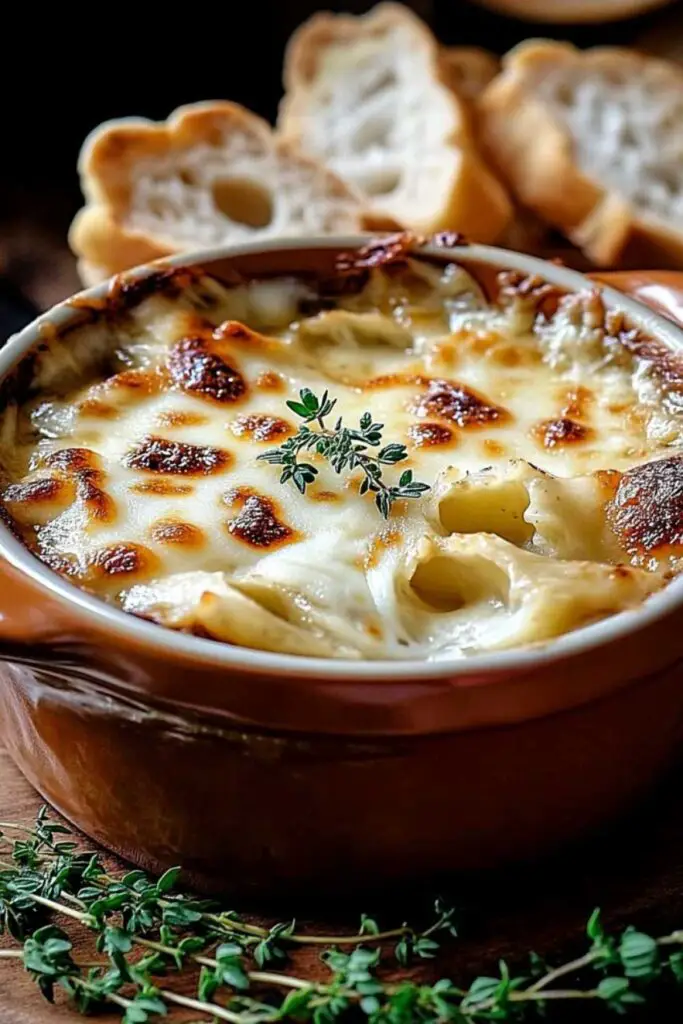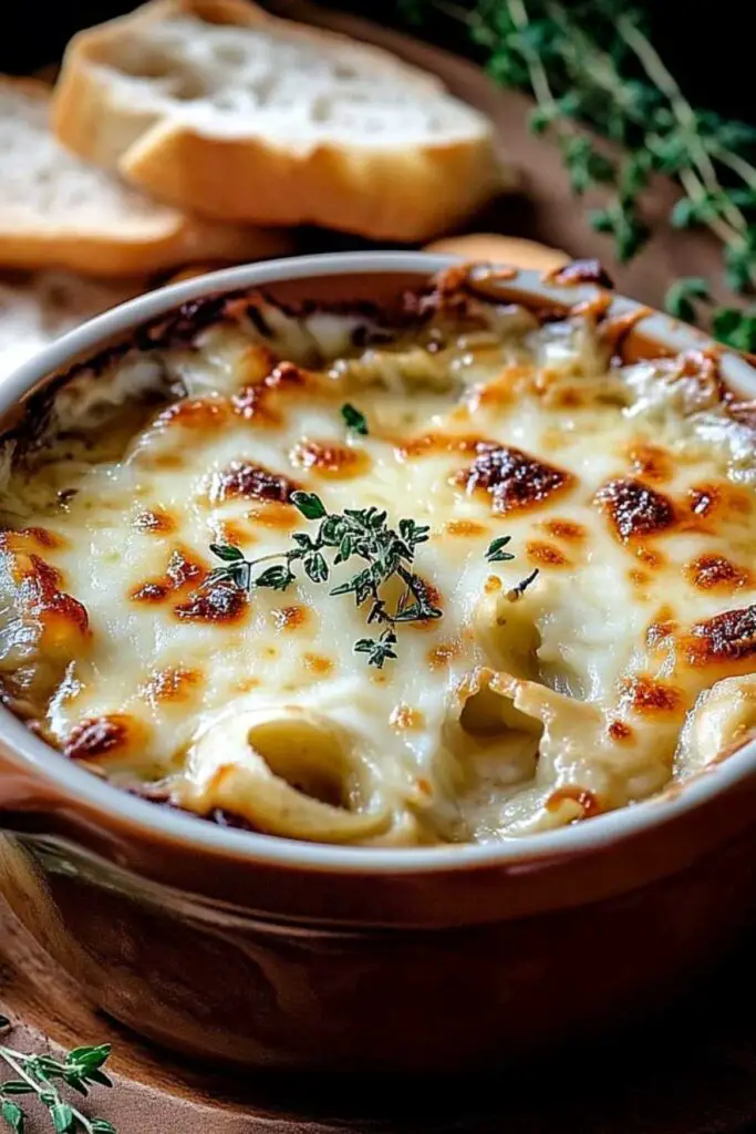 • Can I make Soupe à l’Oignon Gratinée ahead of time? I recommend preparing the soup base up to two days in advance, then adding the bread and cheese toppings just before serving for the best results.