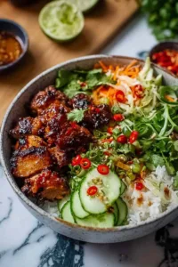 If you love bowls with vibrant Asian-inspired flavors, try my Street Corn Chicken Rice Bowl for a Mexican twist with similar fresh elements, or explore my Honey Lime Chicken Rice Stack for another citrusy, sweet glaze combination.