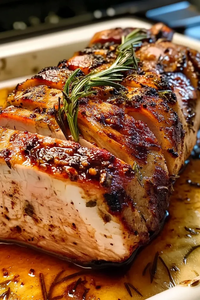 A perfectly seasoned boneless pork loin roast with a golden herb crust and juicy interior, made simple with a two-temperature roasting method that delivers restaurant-quality results every time.