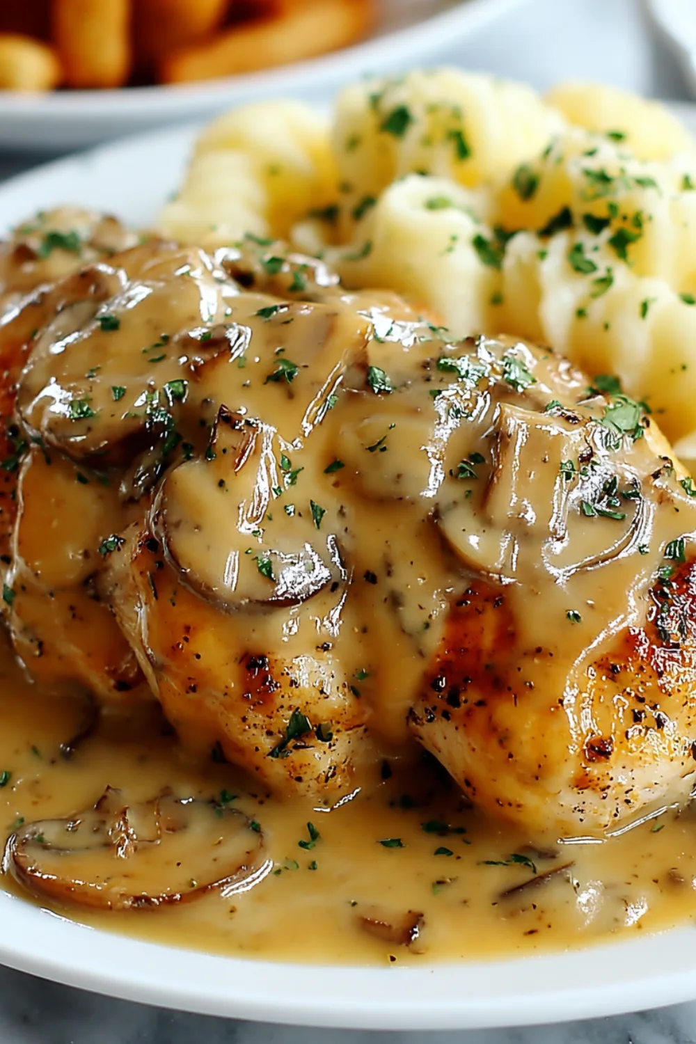 - Mashed potatoes are the most natural pairing for a dish this saucy. The creamy mushroom sauce spooned over fluffy mashed potatoes is genuinely one of the best combinations on a dinner plate. These Creamy Scalloped Potatoes make an equally satisfying potato side that soaks up the sauce beautifully.