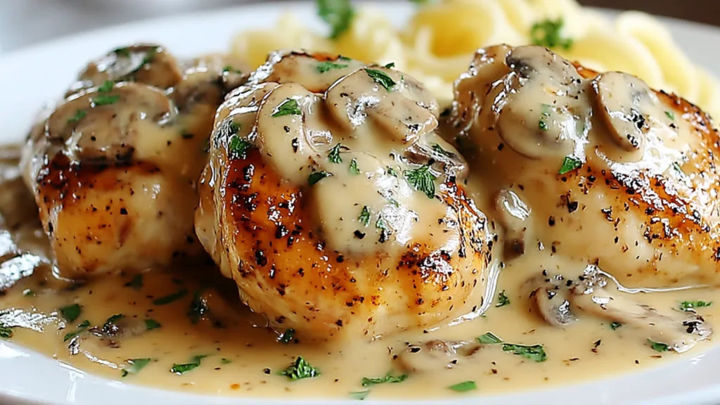 Yes. The mushroom cream sauce can be made up to a day ahead and stored in the refrigerator. Reheat gently on the stovetop with a splash of cream or broth to loosen it before adding the chicken.